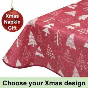 Christmas Tablecloths - these premium quality, wipe clean, machine washable tablecloths & table runners will last and last. All shapes and sizes. Choose your free pack of Xmas napkins at the checkout.