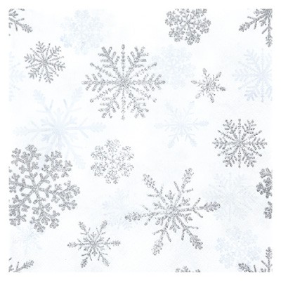 Home Fashion 3ply 33cm Tissue Napkins Snow Crystals Silver