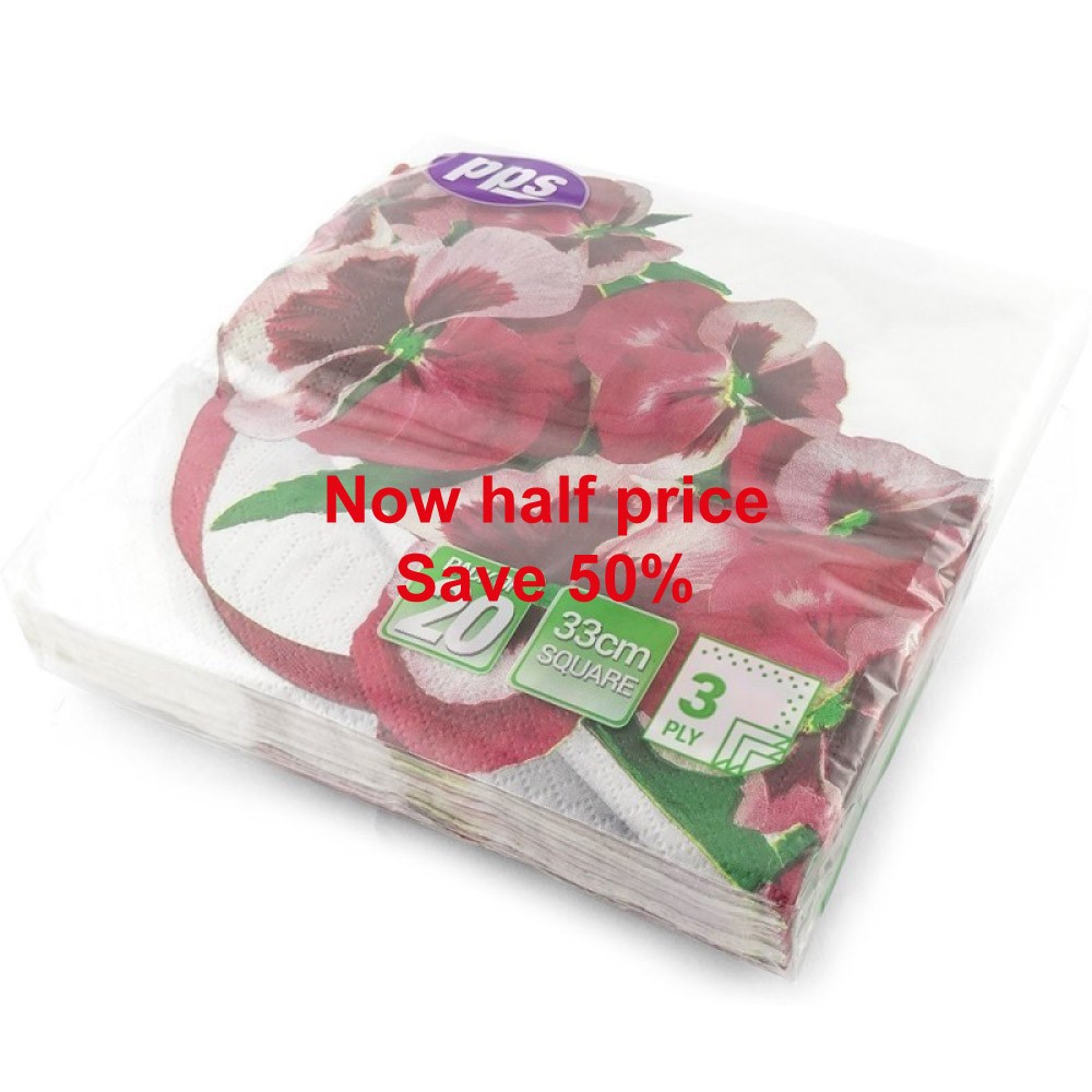 PPS 3ply 33cm Paper Napkins Pink & White Flower