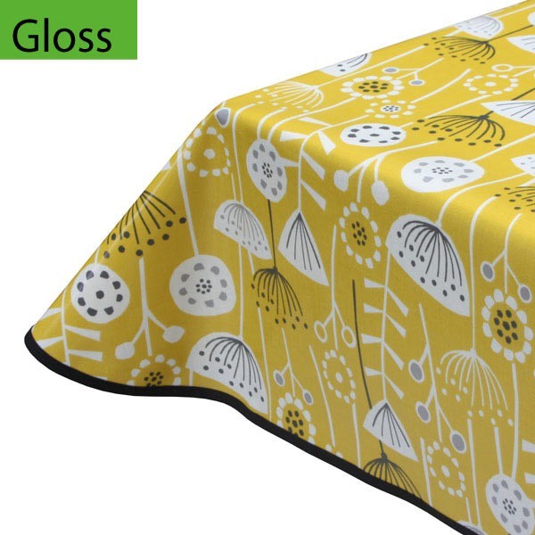 Gloss PVC Oilcloth Remnant, Yellow Flowers 126cm x 130cm